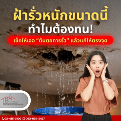 Posted on March 5, 2026 น้ำไม่ได้มาจากฝ้า แต่มาจาก “ต้นตอรอยรั่ว” ที่คุณยังไม่เจอ ฝ้าเป็นรอยด่างเกิดจากหลังคารั่วซึม ฝ้าเป็นคราบน้ำสีน้ำตาลเกิดจากฝ้ารั่วซึมจากห้องน้ำ ฝ้าเป็นคราบน้ำรั่วจุดมุมบ้านเกิดจากมีรอยรั่วจากชายคา ฝ้าเป็นคราบน้ำไหลทางยาวเกิดจากฝ้ารั่วซึมจากผนังร้าว Read More รั่วซึมหนักขนาดนี้ทำไมต้องทน! รั่วซึมหนักขนาดนี้ทำไมต้องทน!