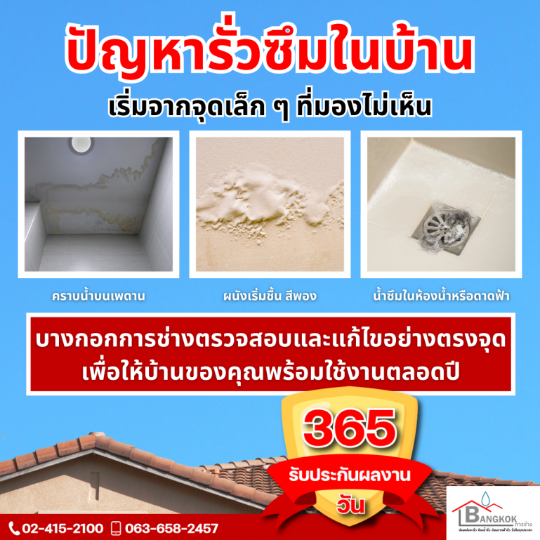 หลายปัญหาในบ้าน Posted on December 25, 2025 by bkkkc Leave a Comment on หลายปัญหาในบ้าน เริ่มจากจุดเล็ก ๆ ที่มองไม่เห็น เช่น คราบน้ำบนเพดาน ผนังเริ่มชื้น สีพอง น้ำซึมในห้องน้ำหรือดาดฟ้า หากปล่อยไว้นาน อาจส่งผลต่อโครงสร้างในระยะยาว บางกอกการช่าง พร้อมเข้าตรวจสอบและแก้ไขอย่างตรงจุด เพื่อให้บ้านของคุณพร้อมใช้งานตลอดปี