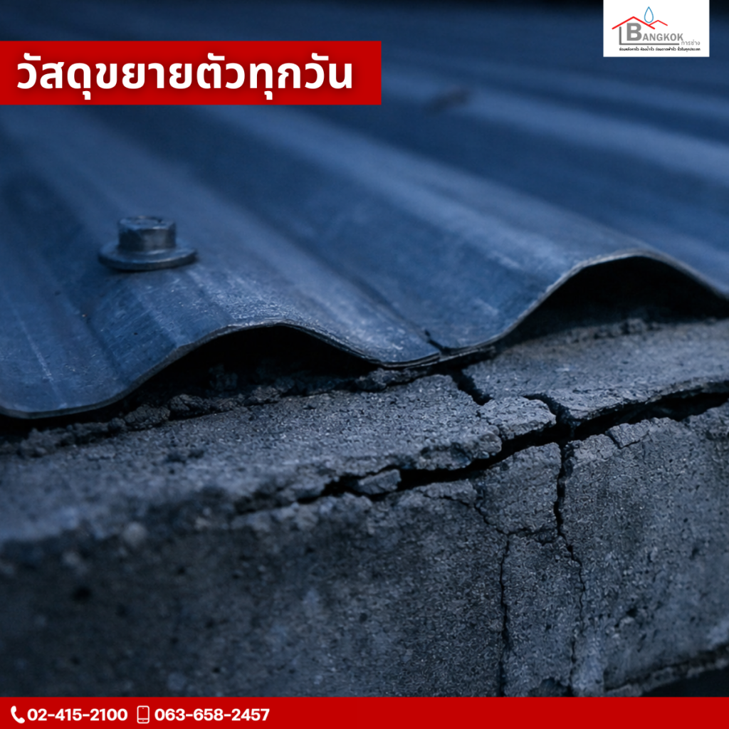 หลังคา แผ่นเมทัลชีท ปูน คอนกรีตโดนแดดจัด ๆ ทั้งวัน พอตกกลางคืนก็หดตัว